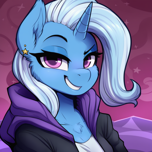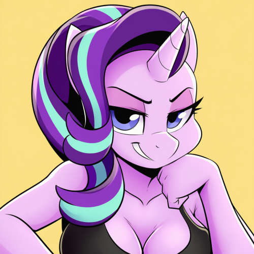 | "This is my ex, Dusk. I.. probably still want him. No, I definitely, do. But, he's engaged to Rarity. He's also a royal guard in Luna's Nightwatch. They're an elite anti-terrorism team.. of.. I don't know. That's not my thing. All I know is, he's tall, dark, handsome, and.. uh.. very.. well.. he's good with his hands, okay?" |